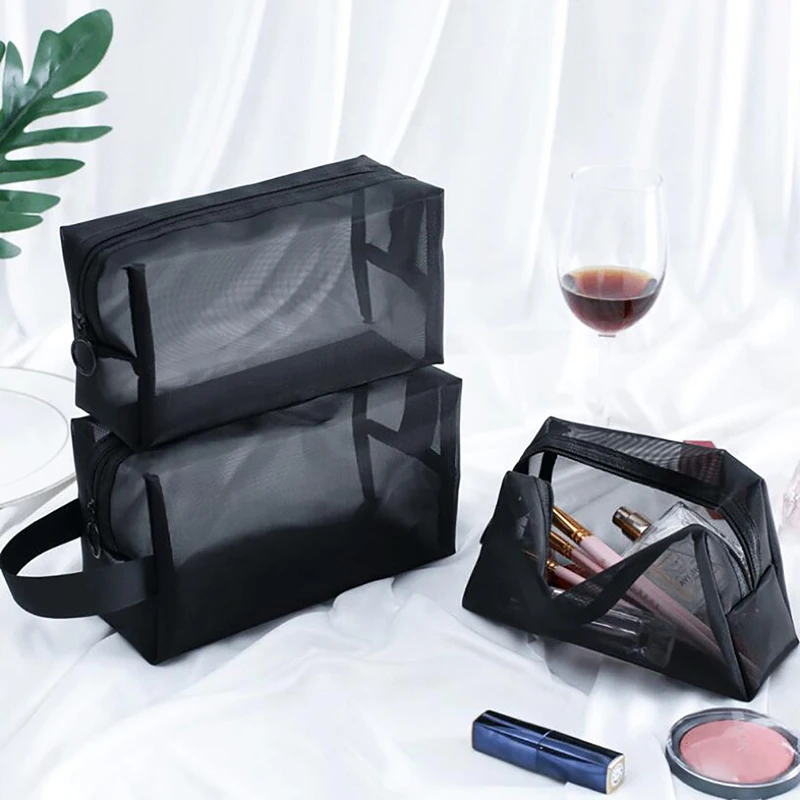 Прозрачный сетчатый органайзер для косметики, сумка для хранения, повседневные сумки на молнии для туалетных принадлежностей, Женская дорожная косметичка для макияжа