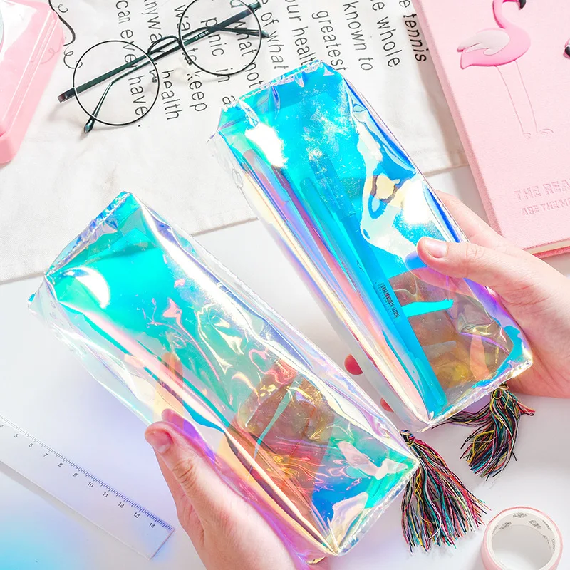 Прозрачный чехол для карандашей, с кисточками