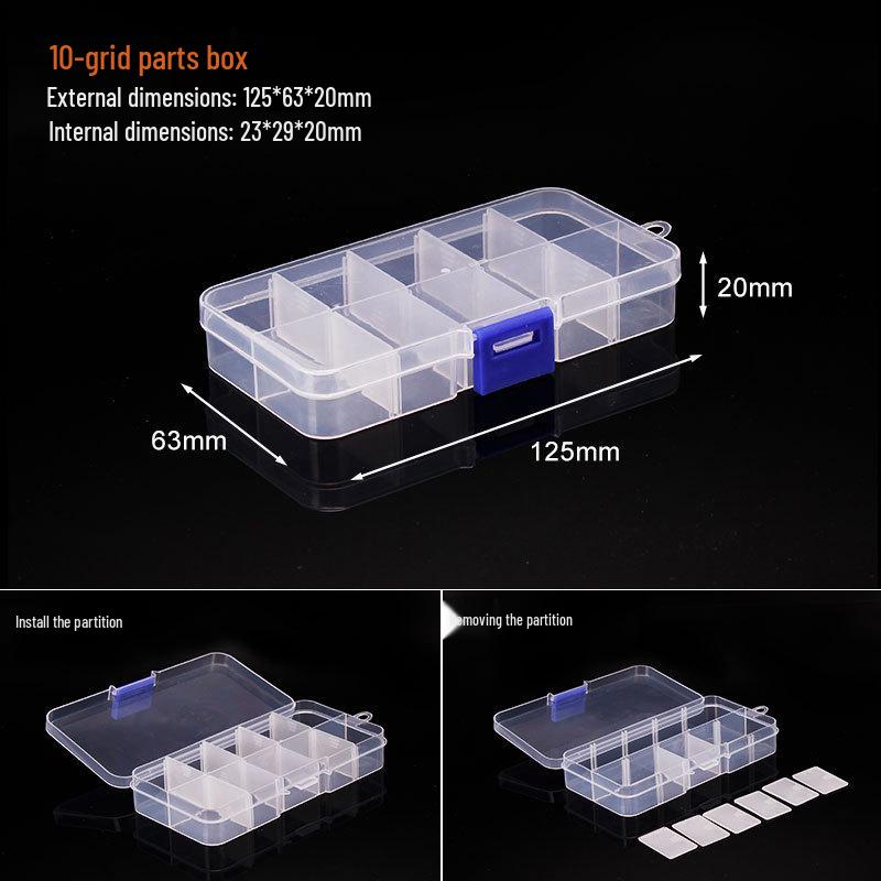 Прозрачный ящик для хранения с 10, 15, 24 и 36 сетками для ювелирных изделий и инструментов - Пластиковые детали Small size 10 compartments can be split