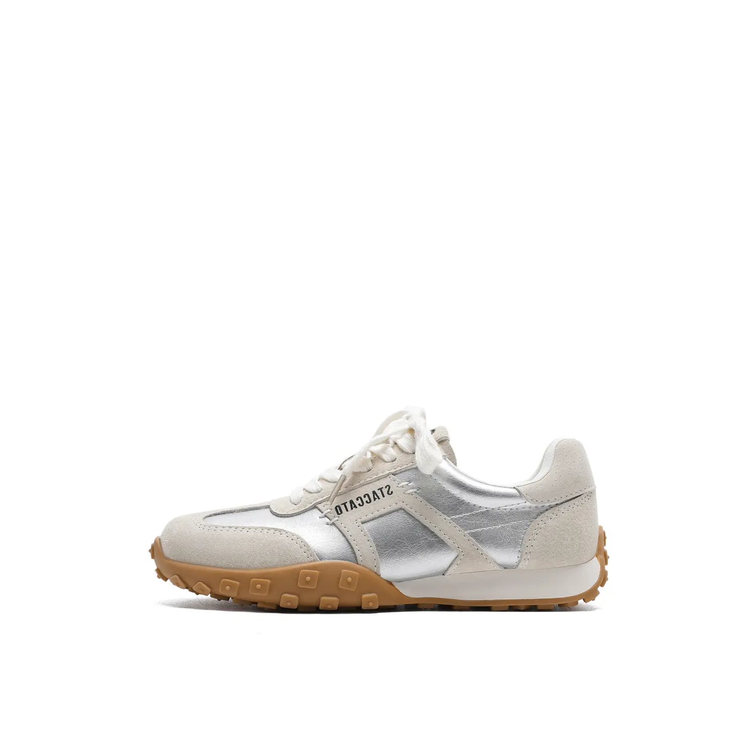 Детские кроссовки с низким верхом, устойчивые к истиранию и дышащие, нескользящие Staccato, серебряный
