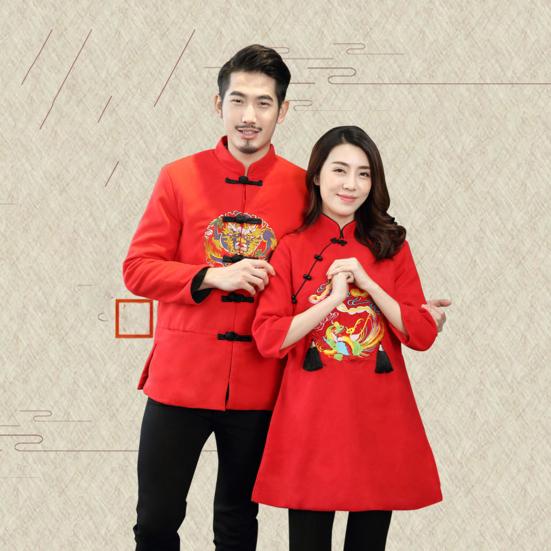 Одежда для пар, праздничный уютный процесс вышивки, свободный, сохраняющий тепло, китайский новогодний костюм Тан, одинаковые наряды для весеннего фестиваля