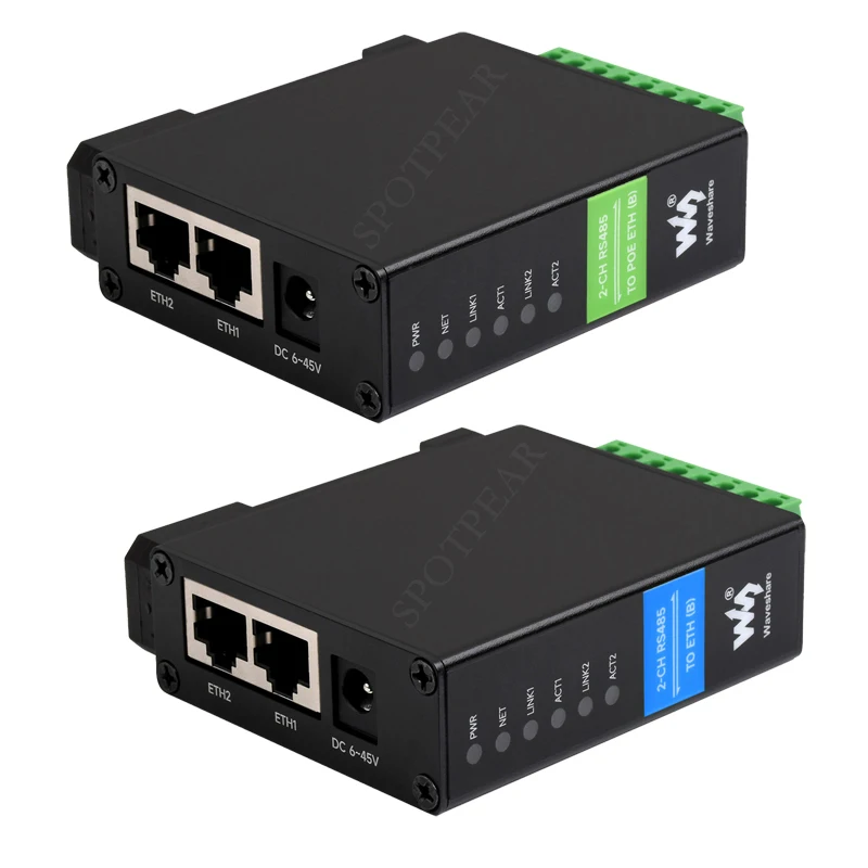 Промышленный изолированный последовательный сервер RS485 к RJ45 Ethernet, два порта Ethernet, два канала RS485, независимая работа