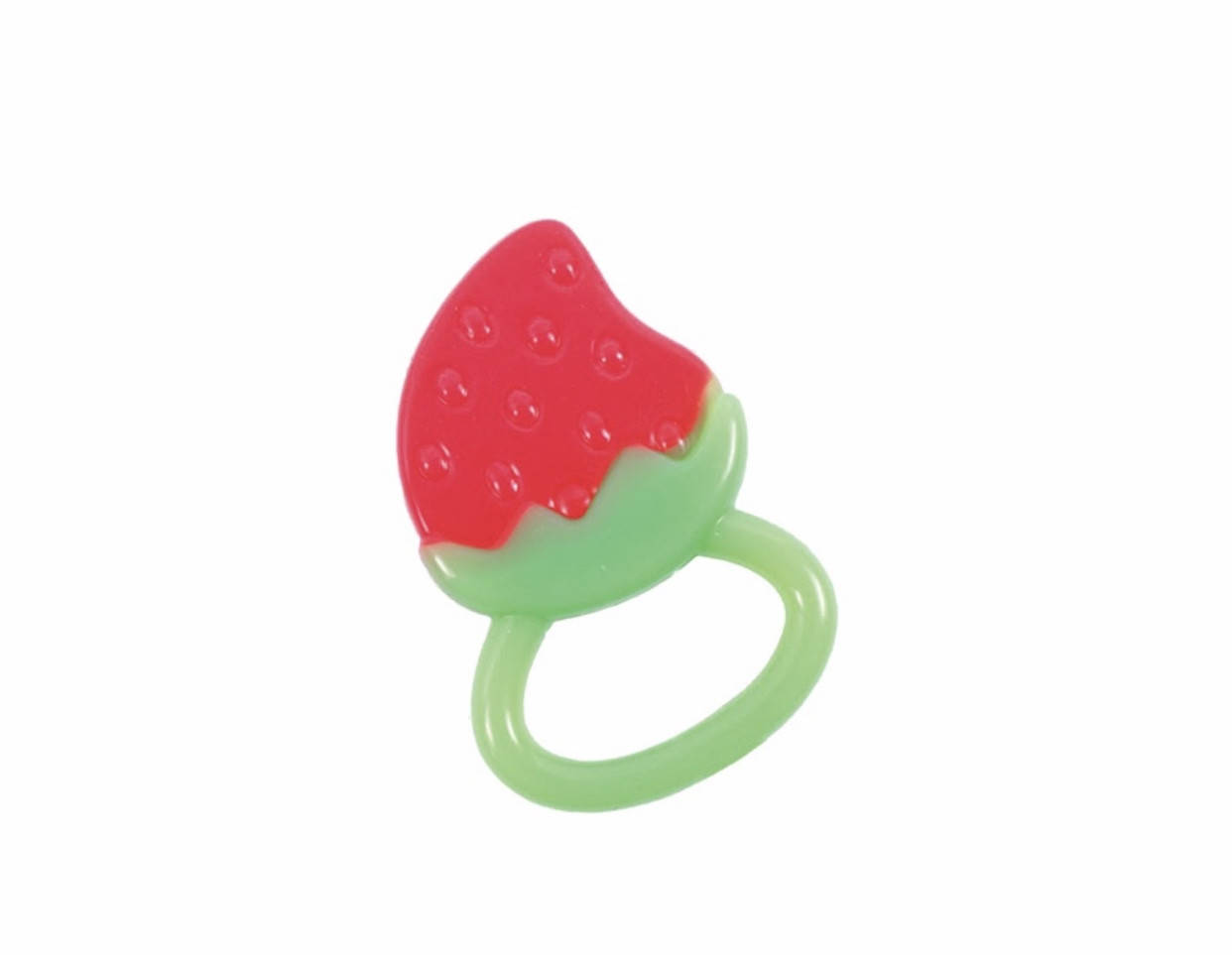 Достаточно прочный и абсолютно безопасен для малыша. Имеет форму клубнички.