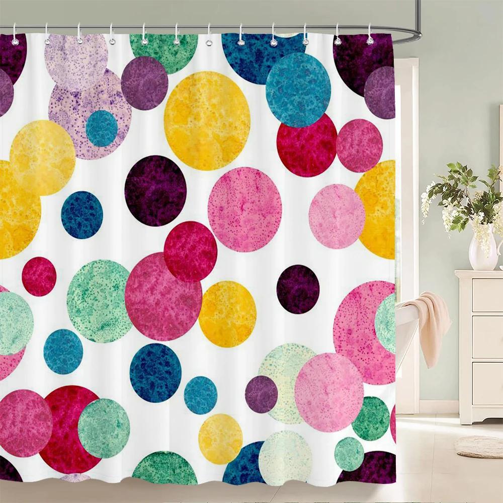 Простая Красочная Геометрическая Тканевая Занавеска для Душа Занавески для Ванной Комнаты Круглая Мозаика Водонепроницаемая Ширма для Ванны с 12 Крючками W90xH180cm