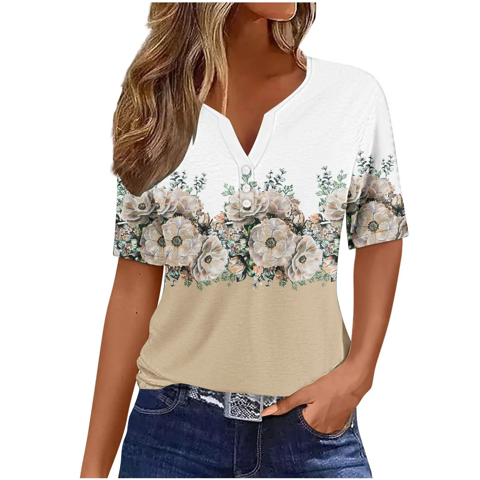 Простая Летняя женская футболка с цветочным принтом и пуговицами, новый модный дизайн, повседневная и удобная футболка WG19, 2024