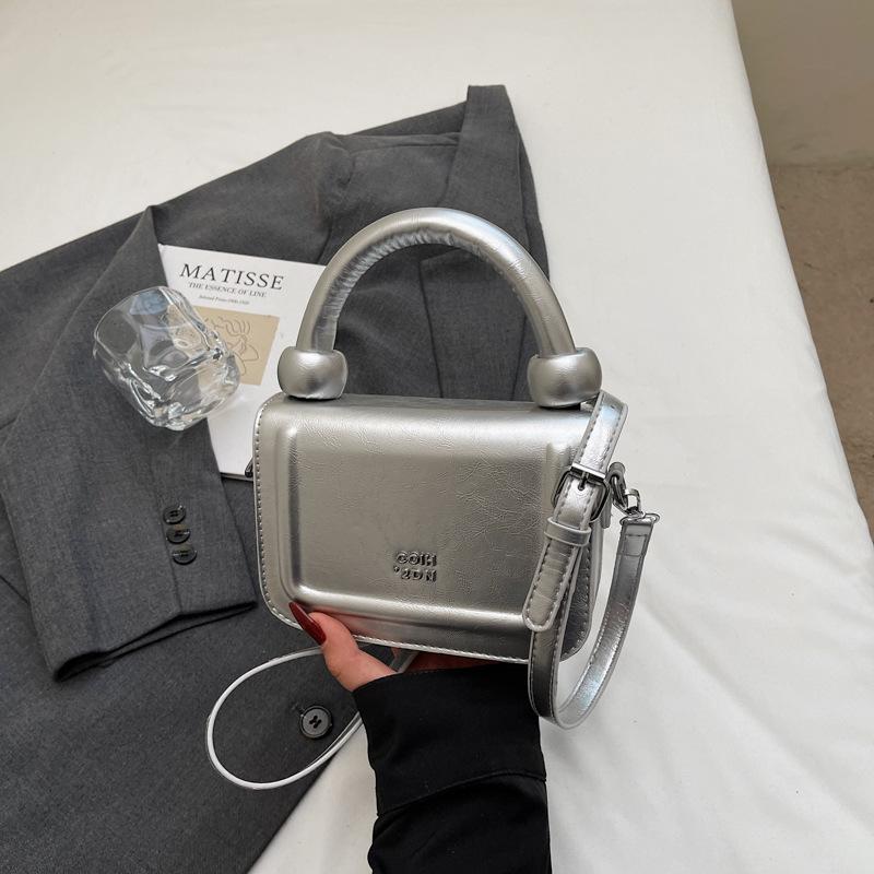 Простая и высококлассная портативная маленькая квадратная сумка 2025 весна и лето новая нишевая трендовая модная повседневная универсальная на плечо женская сумка серебряный