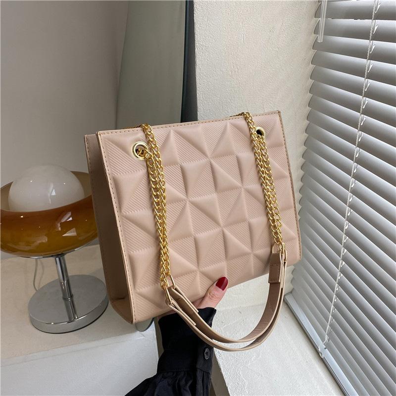 Простая женская модная сумка, новинка 2024 года, весна-лето, новая популярная фактурная сумка-мессенджер через плечо с цепочкой