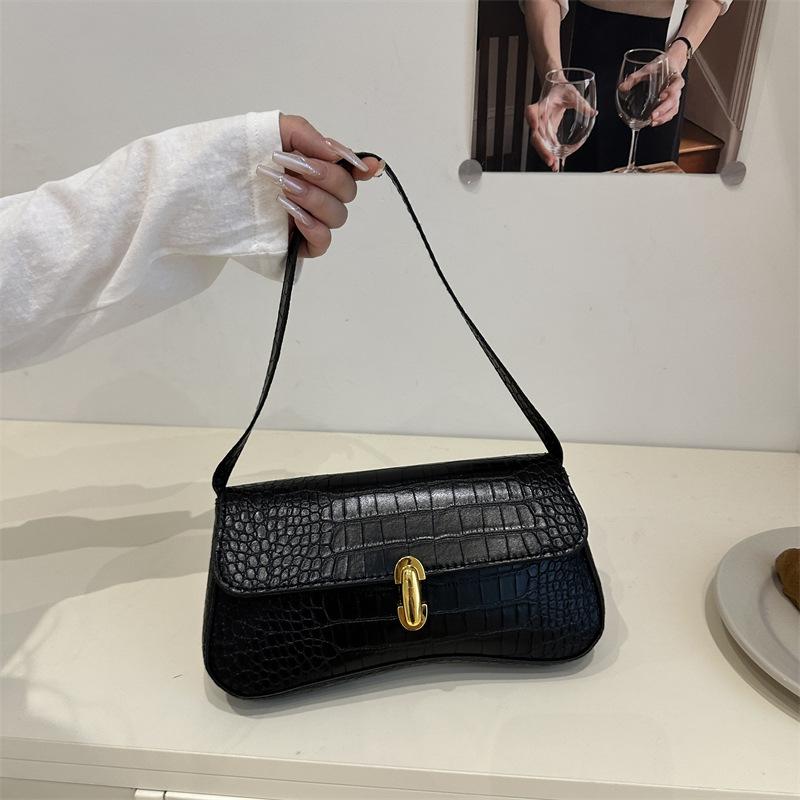 Простая зарубежная повседневная однотонная новая сумка подмышку женская ретро мода осенняя масляная кожа высококачественная сумка через плечо чёрный