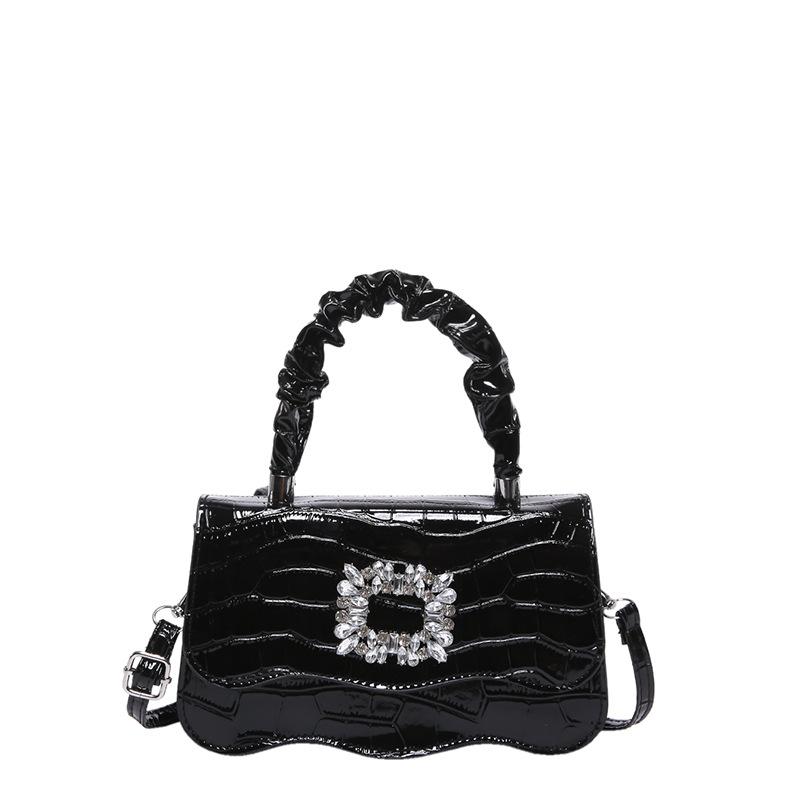 Простая квадратная сумка с инкрустацией из камней и бриллиантов, летняя новая фактурная женская сумка через плечо в иностранном стиле 2024 года чёрный