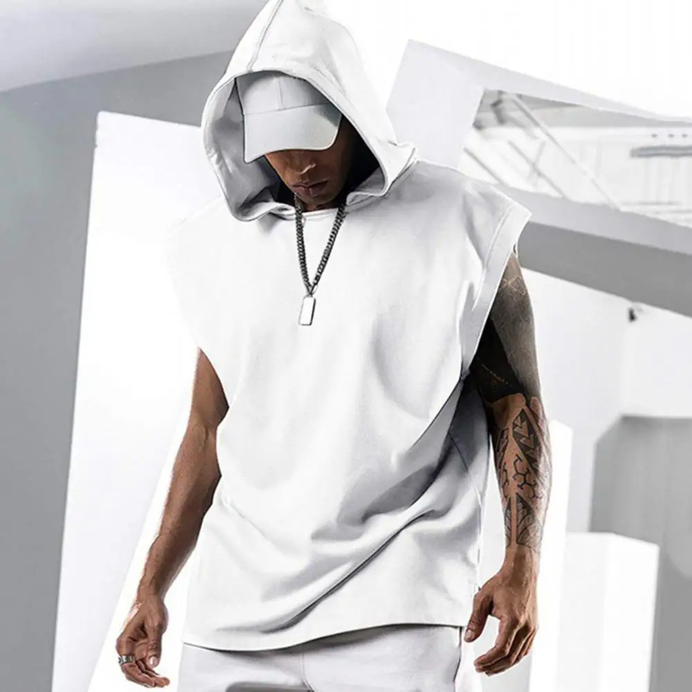 Простая летняя жилетка, Мужская футболка без рукавов с капюшоном, безвредная для кожи футболка