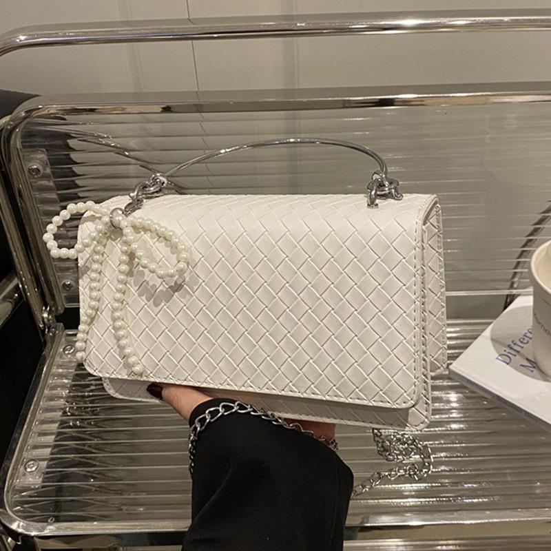 Простая маленькая сумка женская 2025 лето новый тренд мода портативная на плечо подмышку сумка простая плетеная маленькая квадратная сумка белый