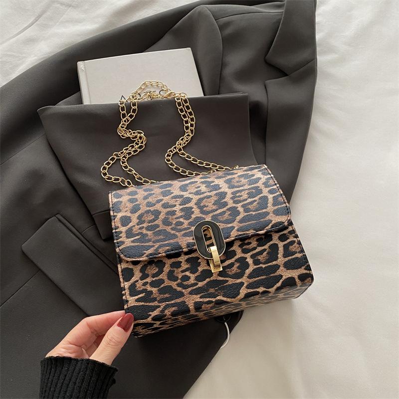 Простая и модная леопардовая 2025 зима новая простая иностранная ретро-цепочка на одно плечо кроссбоди маленькая квадратная сумка женская коричневый