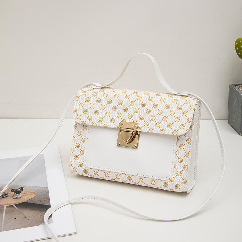 Простая и модная маленькая квадратная сумка с контрастным принтом, персонализированная универсальная женская сумка, замок, портативная сумка через плечо, белый