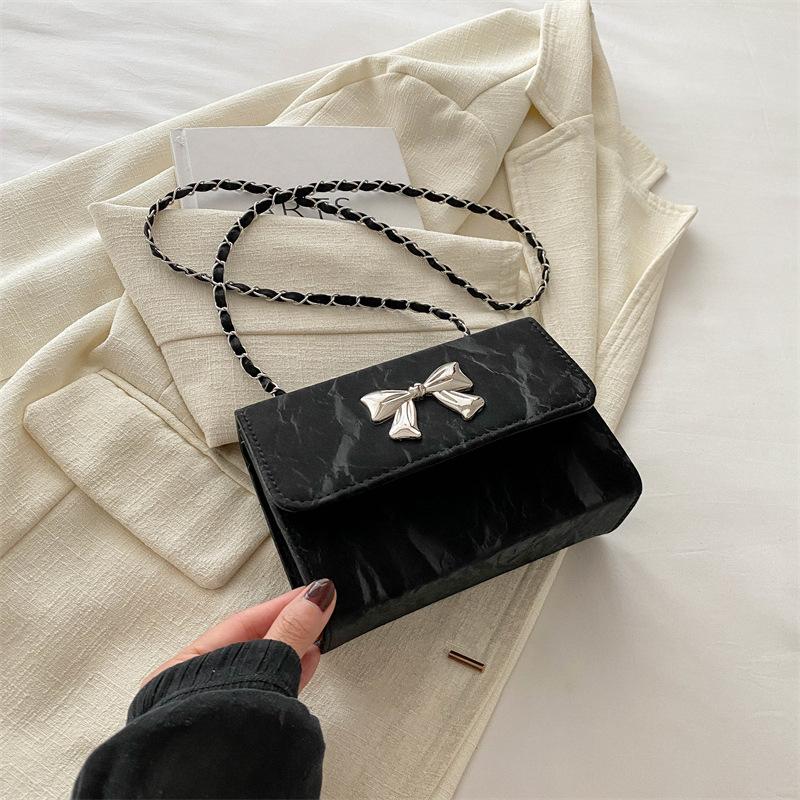 Простая и модная сумка-мессенджер женская летняя 2024 года, новая сумка через плечо с цепочкой, женская модная тенденция, сумка через плечо из зарубежной ткани чёрный