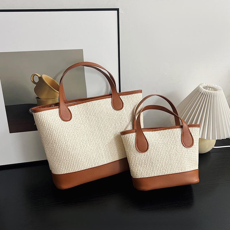 Простая и модная сумка-тоут большой вместимости, летняя новая модная сумка в иностранном стиле для поездок на работу, женская сумка, простая сумка Small коричневый