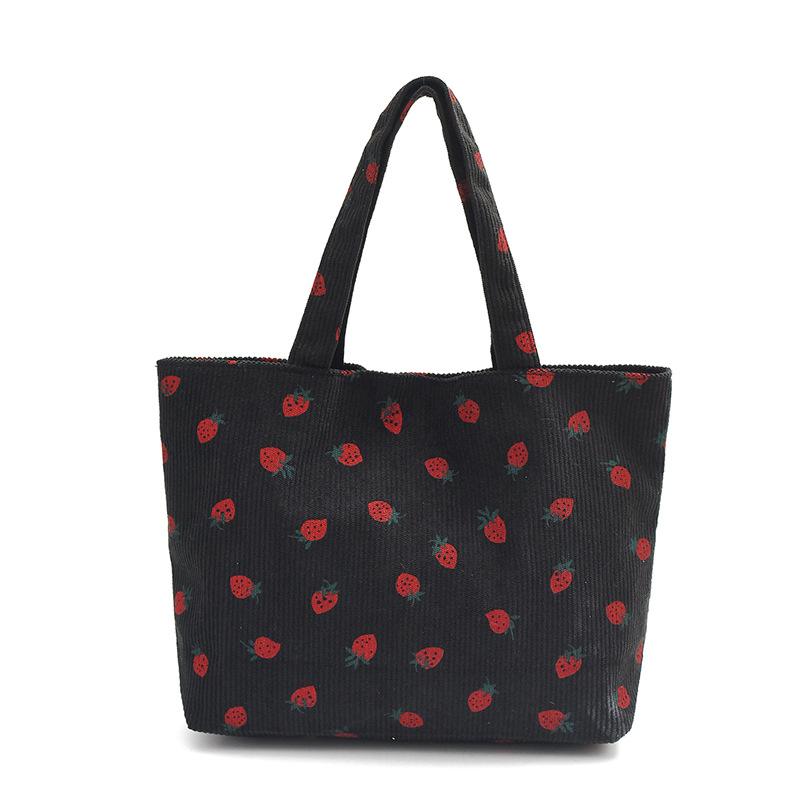Простая повседневная персонализированная сумка через плечо 2024 года, новая студенческая ручная тканевая сумка, модная сумка для девочек с принтом клубники чёрный