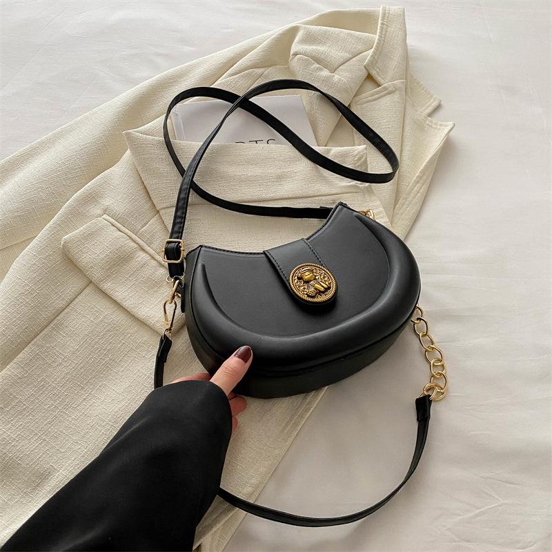 Простая ретро сумка подмышкой женская летняя 2024 новая модная сумка через плечо повседневная сумка-седло сумка подмышкой чёрный