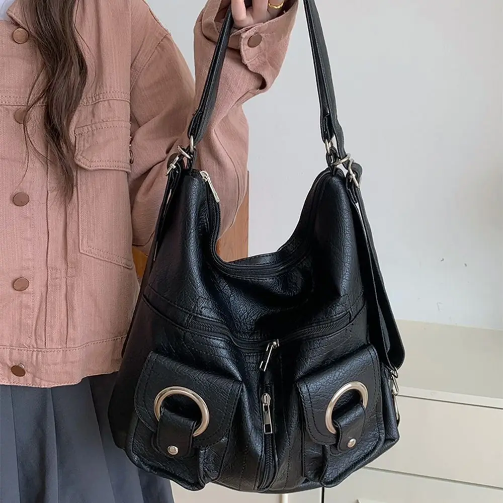 Простая сумка через плечо Y2K в стиле ретро, большая вместительная мотоциклетная сумка для девочек, мягкая кожаная модная сумка-локомотив, уличная одежда