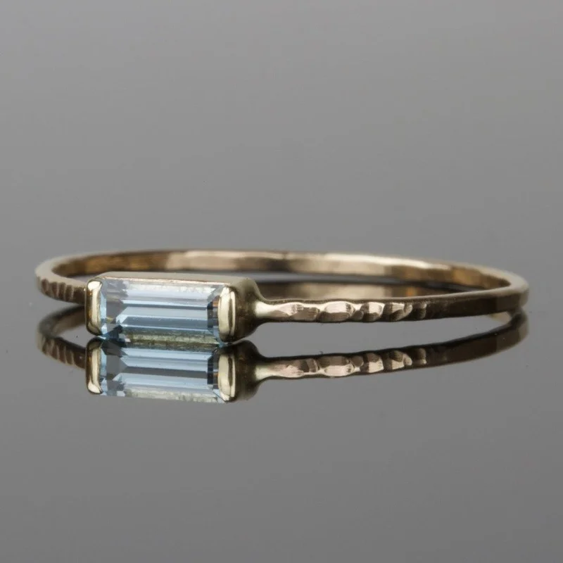 Простое кольцо багета с аквамарином | Натуральное кольцо с аквамарином в стиле арт-деко | Искусственное кольцо