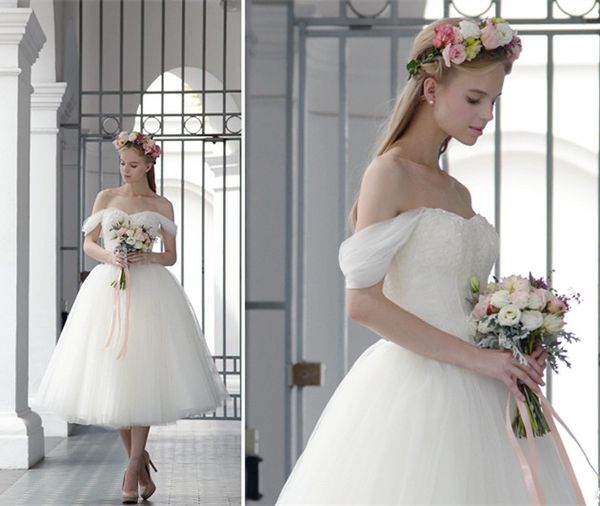 Простой линии тюль чай длина свадебные платья 2018 с плеча молния обратно свадебные платья