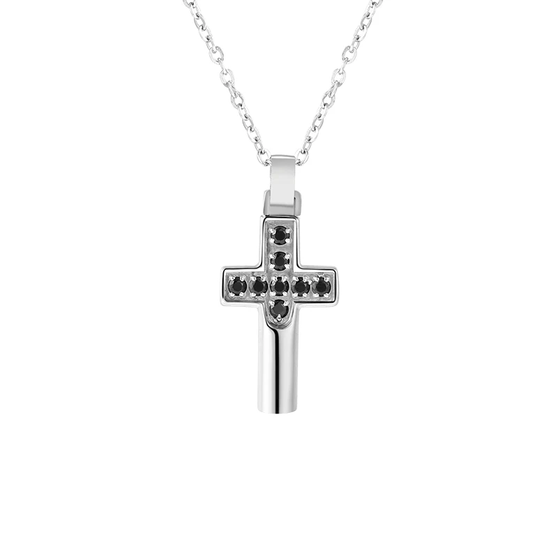 Простой и модный серебряный белый крест инкрустированный черным цирконием ожерелье из нержавеющей стали
