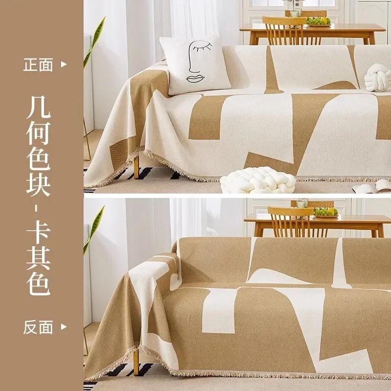 Простой современный диван-полотенце из синели с геометрическим блоком, противоскользящий чехол для дивана, минимальный мягкий пылезащитный коврик для дивана 180x130