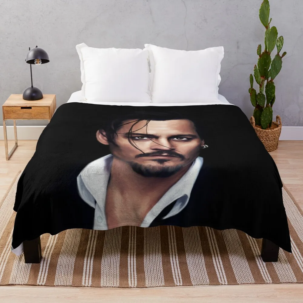 Просторное Флисовое одеяло Джонни Депп, большие вязаные клетки