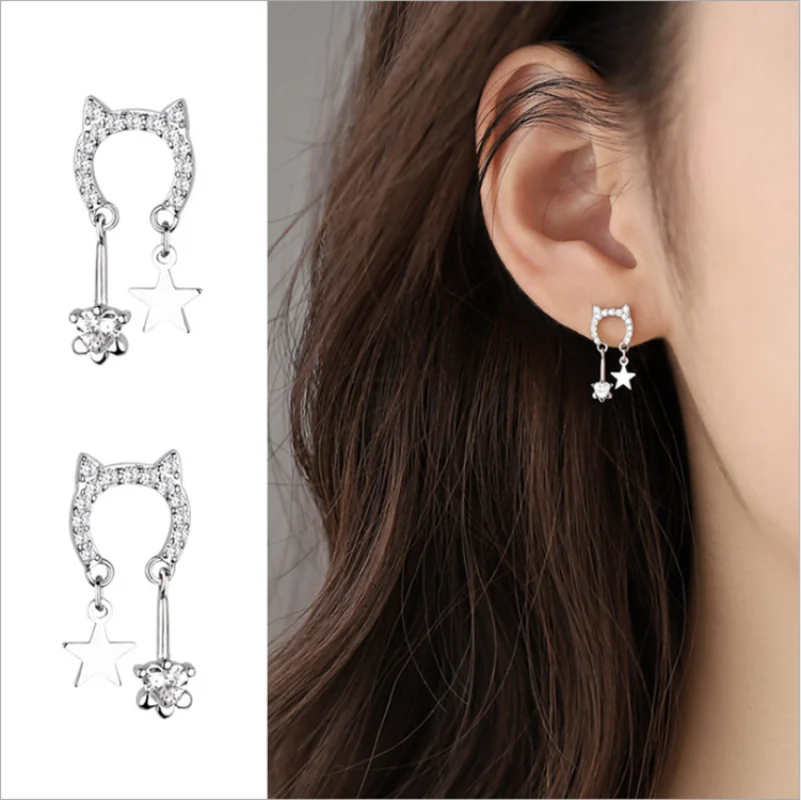 Простые и компактные серьги в форме кота, серьги, Женские аксессуары, персонализированные серьги со звездой из циркония