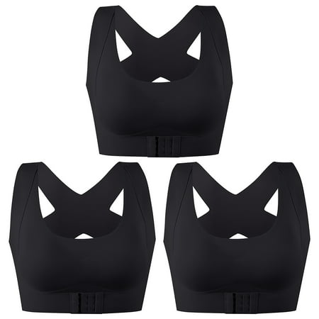 3pcs For Women Posture Corrector Push Up Sports Bra Front Closure Full Coverage