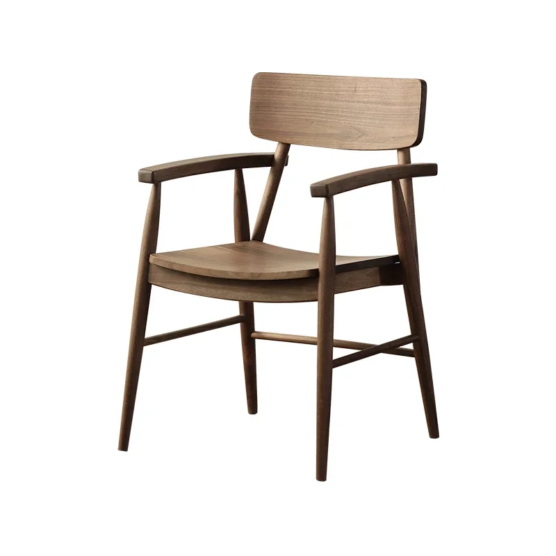 Черные ореховые полностью твердые деревянные нордические минималистичные обеденные стулья, полные подлокотники, письменные столы, стулья, спинки из массива дерева