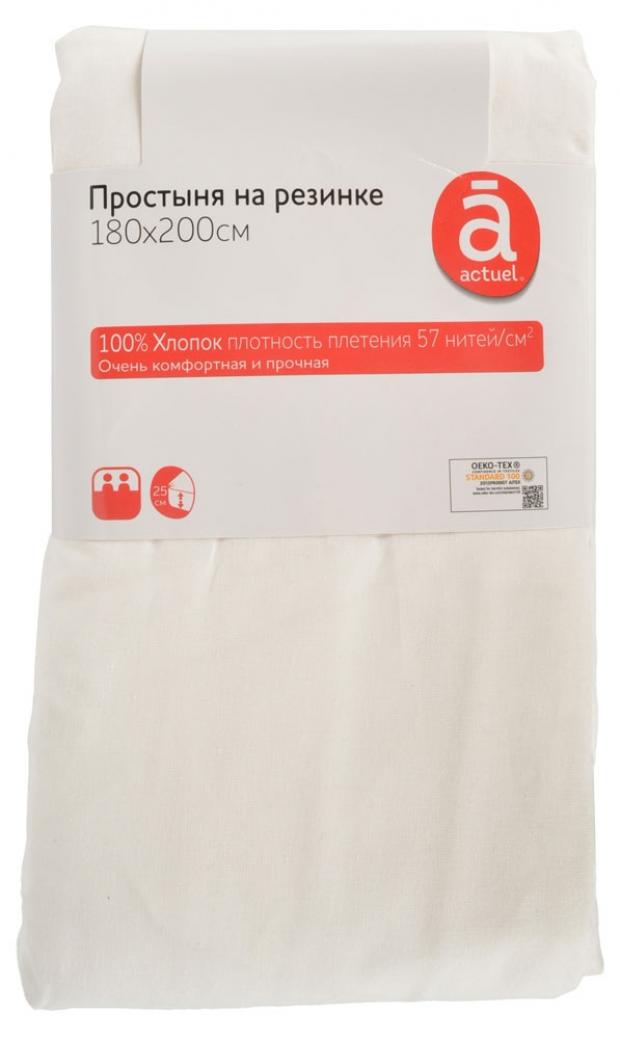 Простыня на резинке 2-спальная Actuel хлопок белая, 180х200 см