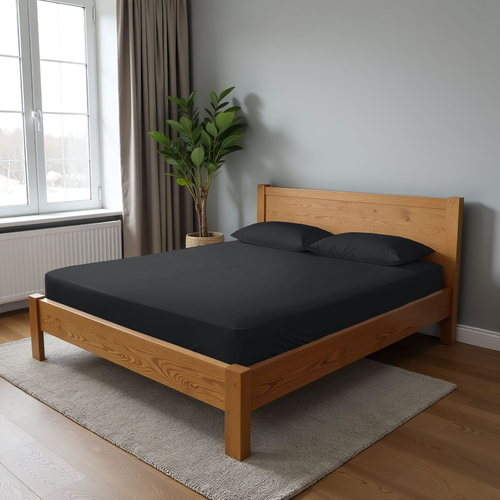Простыня на резинке Homeclub 220x200см черная страйп-сатин