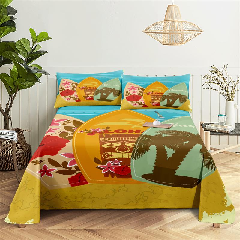 Простыня с изображением морской звезды и кокосовой пальмы, модный принт, полиэстер, детская кровать Queen, плоская простыня с наволочкой, комплект постельного белья, простыня 150X230cm(2Pcs)&Flat Sheet