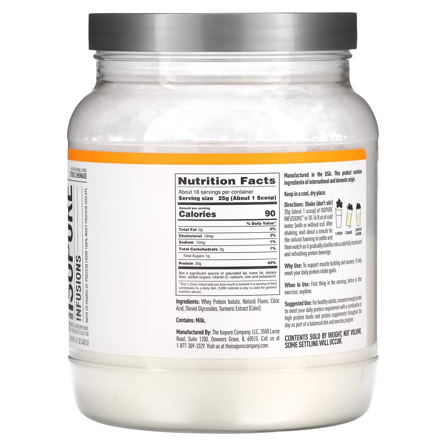 Протеиновый порошок Infusions, цитрусовый лимонад, 14,1 унции (400 г) Isopure