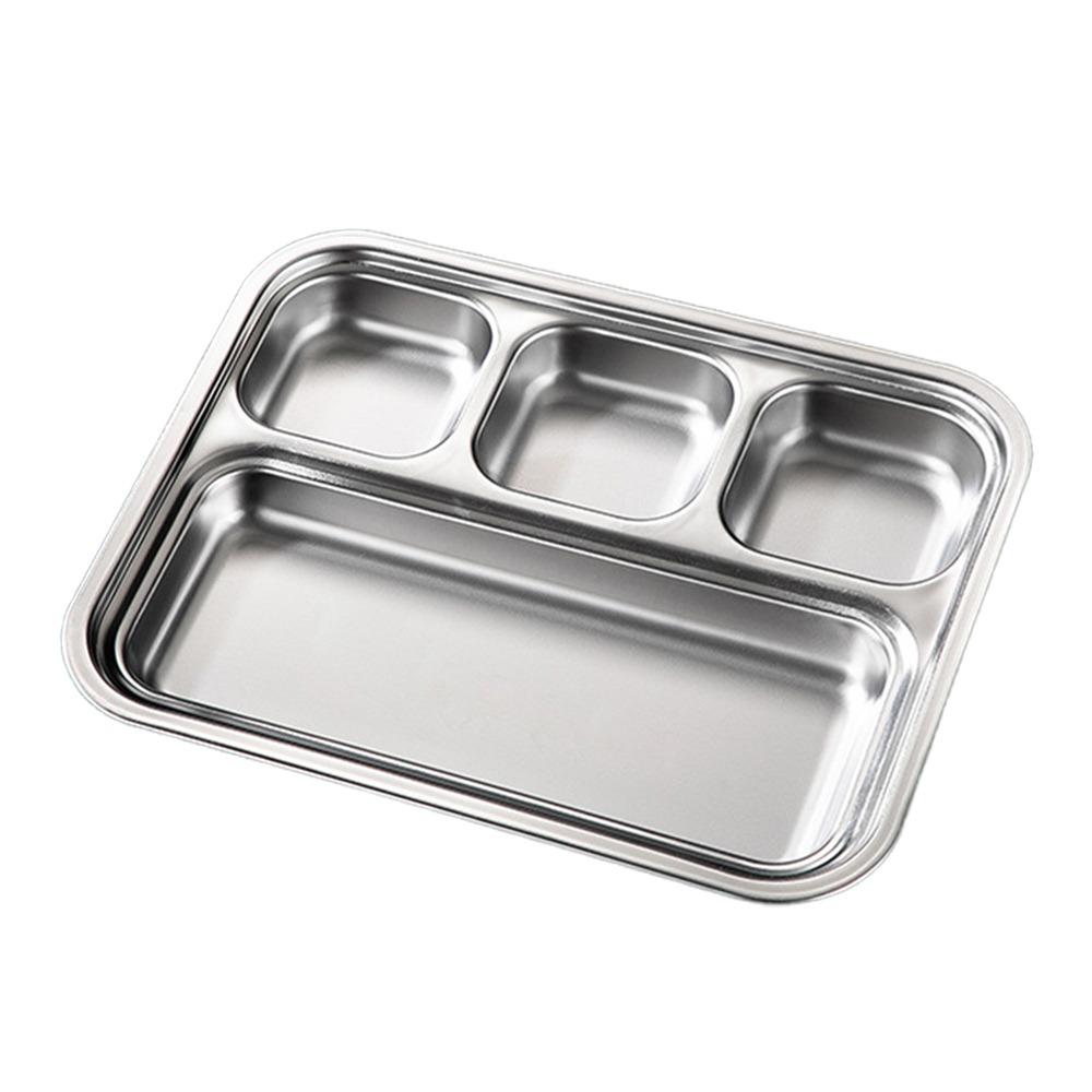 Противень из нержавеющей стали 304 с решеткой на 3/4, подставка для соуса, поднос для специй в корейском стиле, столовая посуда Silver-4grids 1