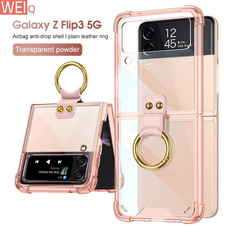 Противоударный чехол-бампер для Samsung Galaxy Z Flip 3 5G/прозрачный жесткий чехол с кольцом-подставкой для Samsung Z Flip3