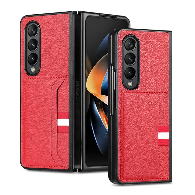 Противоударный чехол с отделением для карт для Samsung Galaxy Z Fold 4 Fold3 Fold4 Fold 3 2 Fold2 Роскошные кожаные защитные чехлы for Samsung Z Fold 4 красный