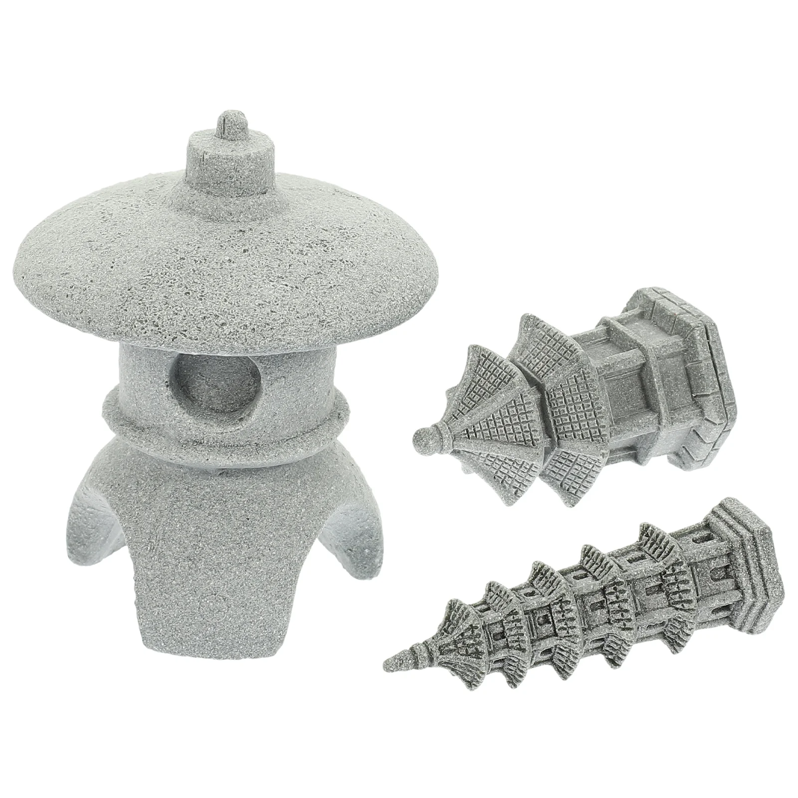 3 Pcs Japanese Tower Light Decoration Unique Pagoda Bedroom Desktop Ornament Stone Office Decorative Building Sculptures