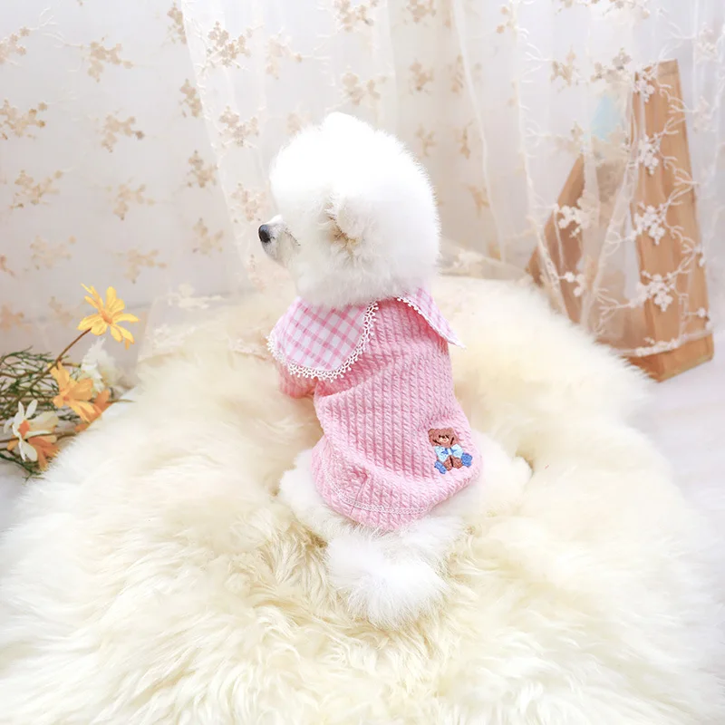 Pet dogs cats puppy lovely cute 2021 clothes autumn new dog cat clothes plaid doll collar teddy bichon student bottoming shirt