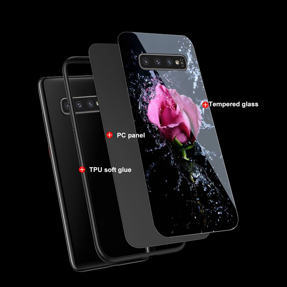 Flower Rose Glass Case for Samsung Galaxy S21 A51 S20 A50 A71 A70 S10 S9 S8 A21S M31 S10e A20 A30 Note 20 10 9 Lite Plus Ultra