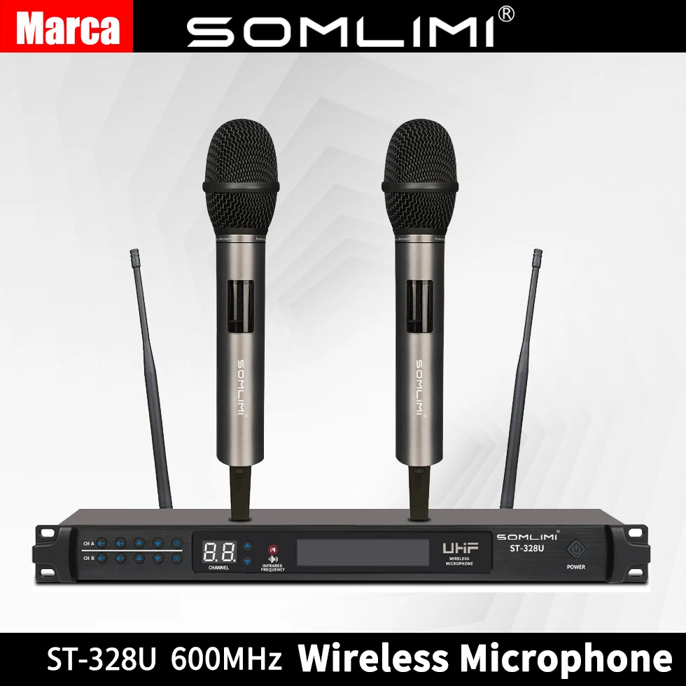 Профессиональный беспроводной микрофон бренда SOMLIMI, двухканальный ручной пульт дистанционного управления UHF, микрофон для сцены и производительности