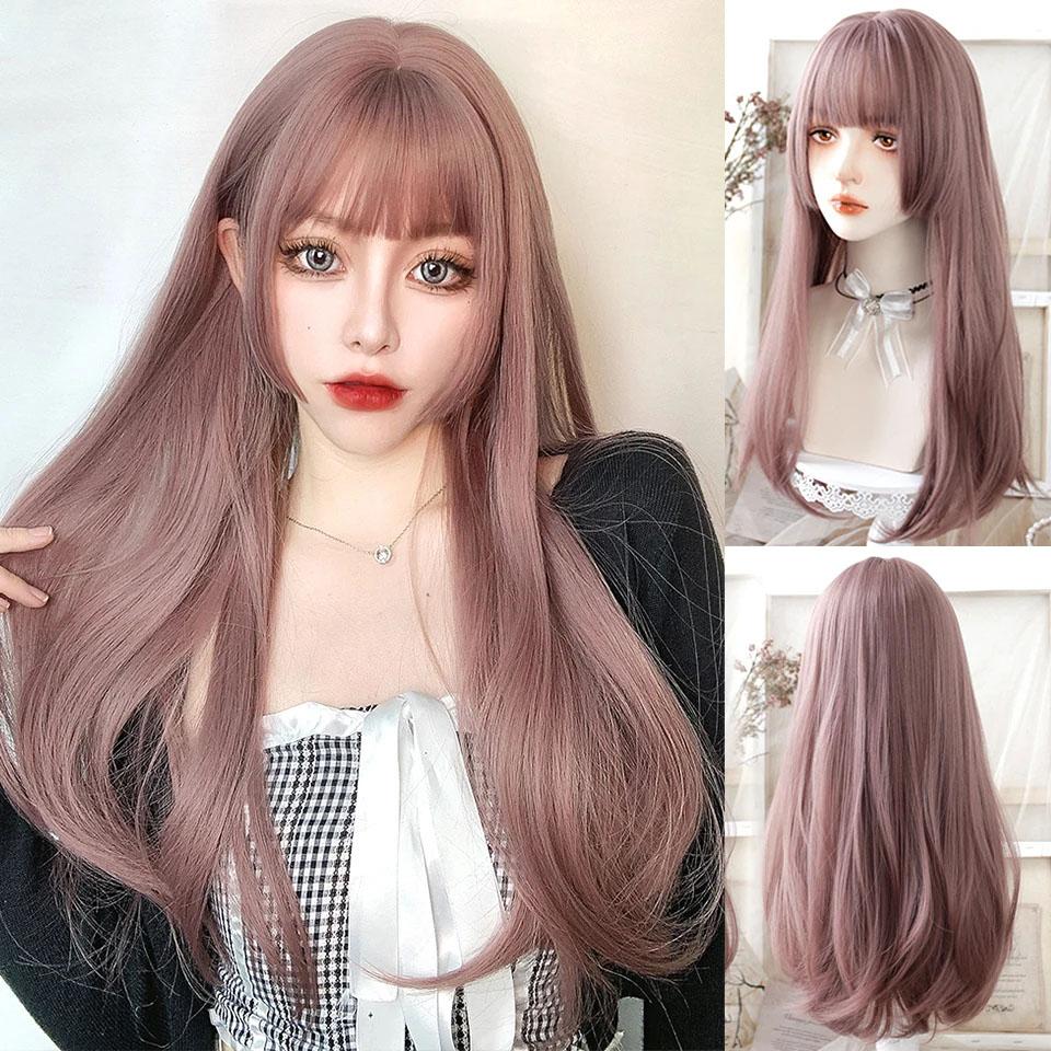 Профессиональный длинный цветной синтетический парик для косплея Лолита Харадзюку с челкой, натуральные волнистые парики, белые и зеленые повседневные парики