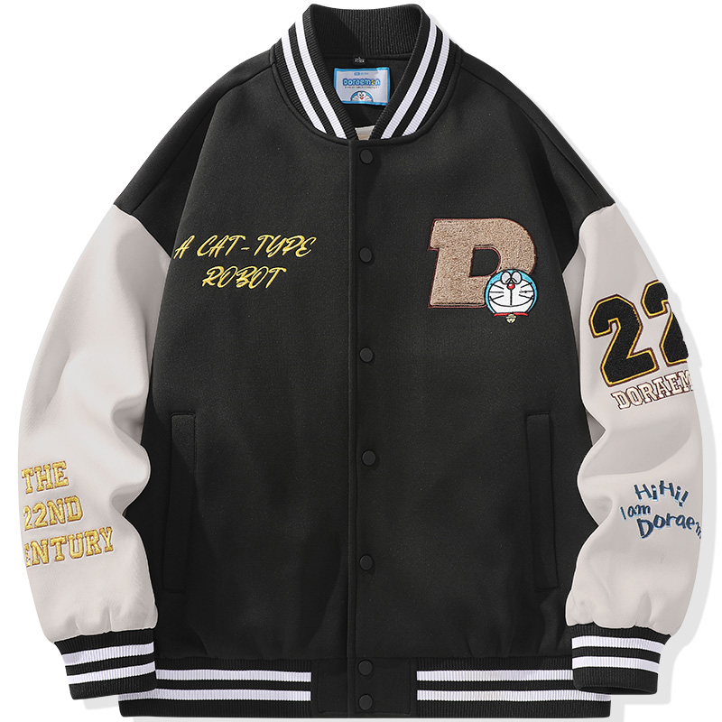 Бейсбольная куртка унисекс Doraemon, черная (съемный капюшон), Черный, Бейсбольная куртка унисекс Doraemon, черная (съемный капюшон)