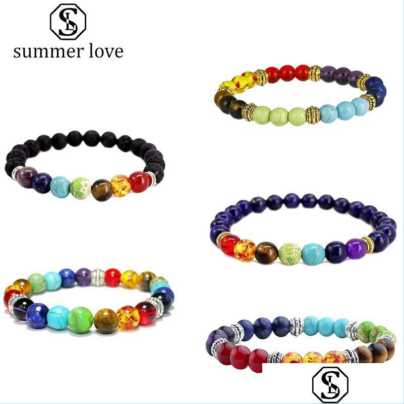 Beaded Sell 7 Chakra 8Mm Healing Nce Beads Bracelet For Women Men Adjustable Size Nature Stone Yoga Fashion Jewelry Gift Drop Delive Dhihk
