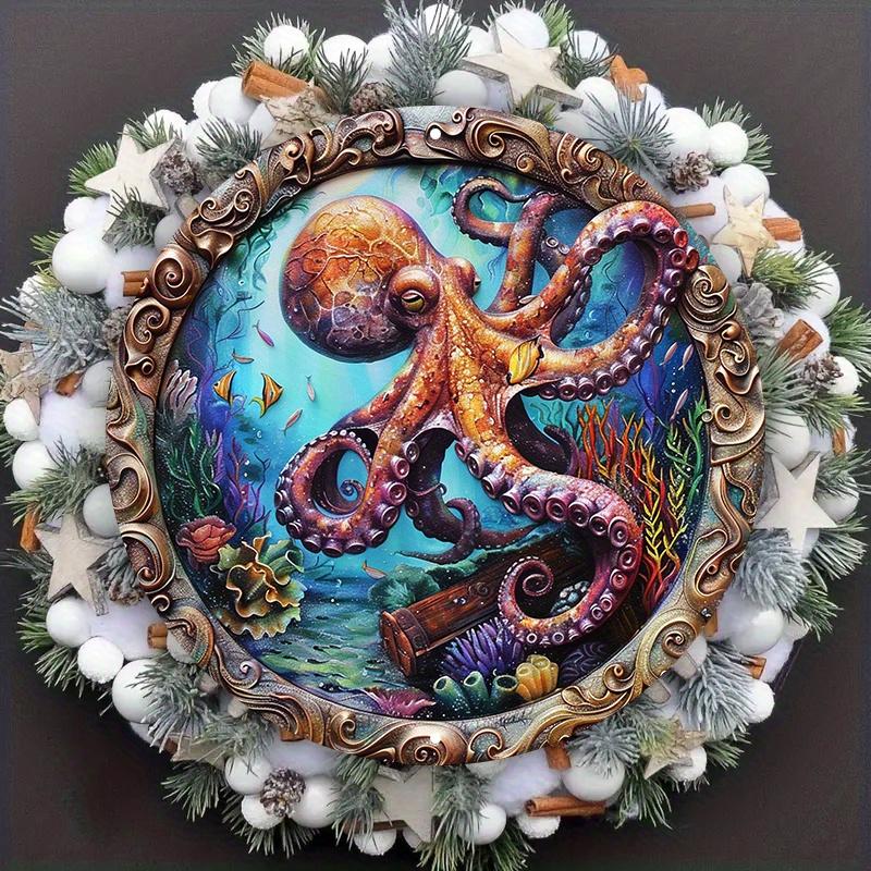 Прочная деревянная табличка «Венок с осьминогом», устойчивая к царапинам, декор для помещений и улицы, идеальный подарок на День святого Валентина 20x20cm 7.87x7.87in