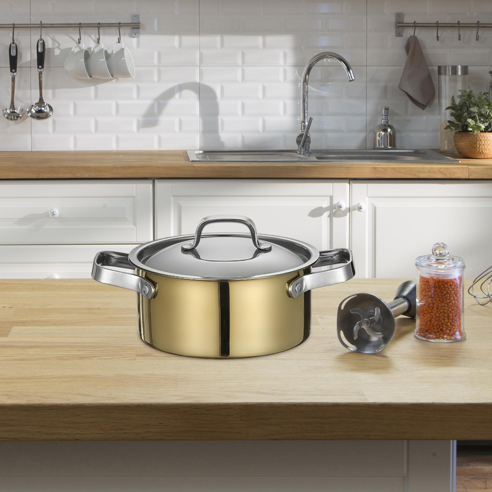 Прочная кастрюля из нержавеющей стали с надежными ручками и крышкой для путешествий дома Golden
