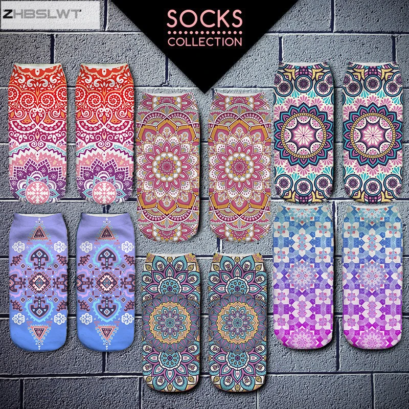 Прямая поставка с завода, носки-лодочки с 3D принтом, носки для взрослых, женские носки с принтом мандалы