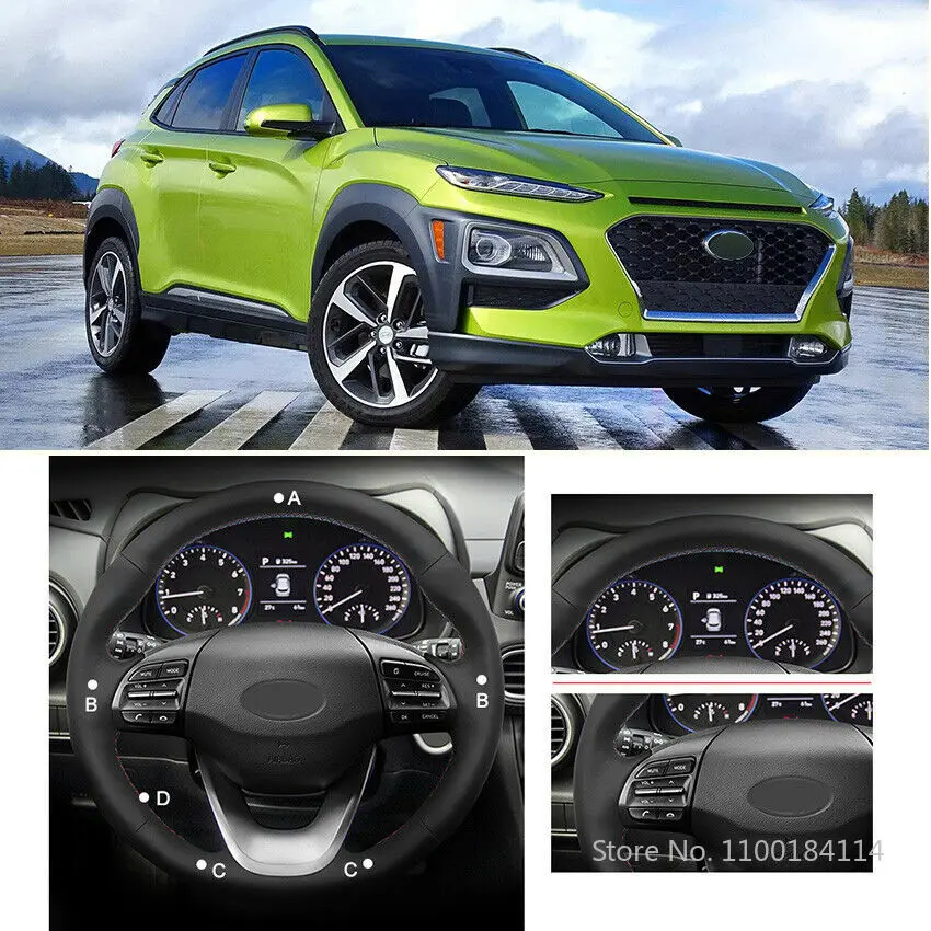 Прошитая вручную прочная черная гладкая кожа с красной нитью для Hyund Kona