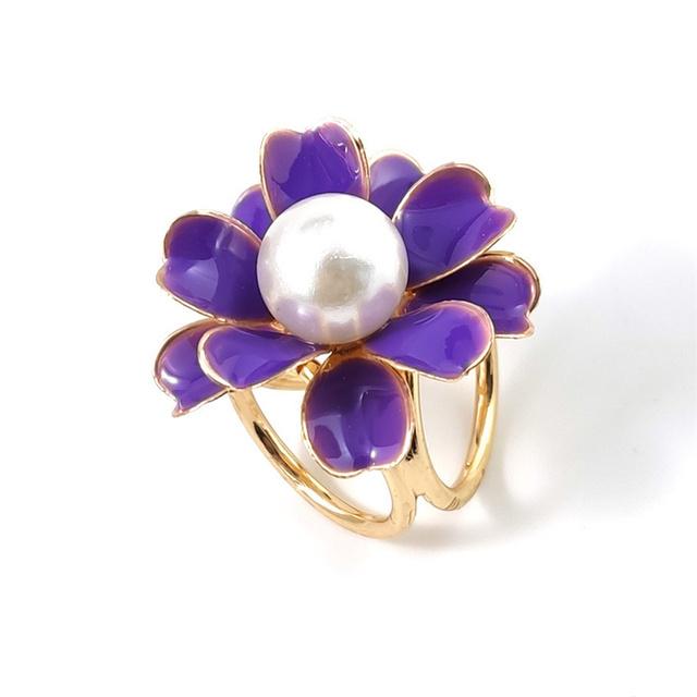 Пряжка для шарфа из шелка с тремя кольцами, жемчужинами и цветком, брошь с пряжкой для шарфа двойного назначения, простая пряжка для шали, ювелирное изделие фиолетовый
