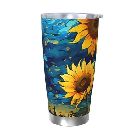 Bingfone Vintage Starry Sky Sunflower for 20 Oz Stainless Steel Travel Mug Double Wall Water Coffee Cup for Home Office Outdoor Works Great for Ice Drinks and Hot Beverage-Without Straw